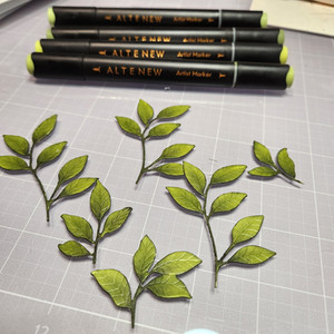 o Once dry, apply a light coat of Antique Gold pigment ink to all leaves. Set aside to dry.